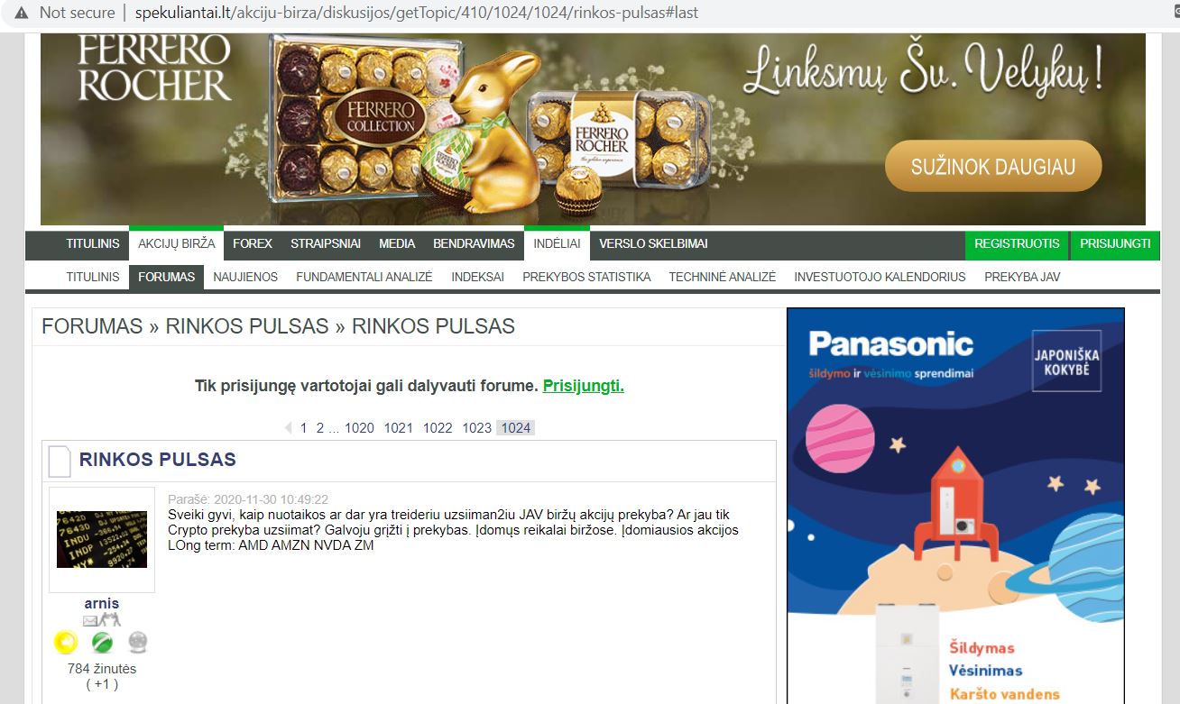 Parshiukas [2021-04-05 16:18]: Aha tikri lietuviai taupytojai ir skriagos. Na tada belieka paprastint foruma iki minimumo, jokiu ten grafiku, straipsniu, kaip koks chatas liks. Prie ko čia skriagos, ne skriagos? Asmeniškai VZ nematau nieko įdomaus , ką verta skaityti būtų. Vietiniai pletkai. O delfi mokamas turinys, tai aplamai žemiau visko. ------------------------------------- Traders.lt žymiai idomiau, nes jis yra gyvas. Tai jo privalumas. Parshiukas [2021-04-05 16:18]: O del reklamu uzeikit i spekuliantai.lt grazu ir sypsena kelia. Lazybos, lidl puodai... Man išmetė tokias reklamas, paspaudžiau ant covid testų reklamos, manau įmečiau 50cnt spekuliantams |