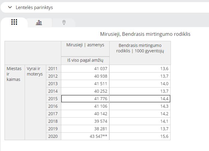 artas71 [2021-09-09 09:48]: Krosneles.eu [2021-09-09 08:48]: P.S čia pamastymui apie ligos baisumus, ir ar verta dėl 0,1 proc susirgusių uždarinėti šalies ekonomiką. 4000 naujų mirčių Lietuvos mastu. Iš nieko. Tiesiog todėl, kad nesiskiepijo. Ir maždaug 12000-14000 ligonių ligoninėse papildomai. Buhalteris esi, mėgsti skaičiukus, tai tau oficialūs statistikos duomenys: https://osp.stat.gov.lt/statistiniu-rodikliu-analize?hash=1e76eeeb-772c-4b26-9ca4-2a9de816ec58#/ Ir kur tu matai tuos baisumus bendroje mirčių statistikoje, mirė 1500 žmonių daugiau nei 2015 metais, ir 4000 daugiau nei 2019m , įtrauk dar mirtis, kad negavo medicininių paslaugų dėl sustojusios sveikatos apsaugos, likusius nurašyk ant covid. Jokių ypatingų baisumų nematau |