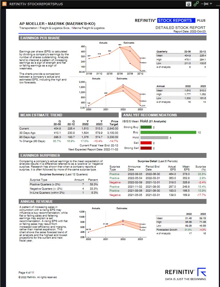 Bet įtarimai tokie, kad rezai superiniai, bet prognozė bus su krūva neigiamų atspalvių. Kol kas P/E ~1.45, ir P/Bv ~0.74 https://www.reuters.com/markets/companies/MAERSKb.CO/ P.S. matau 2 anal....us, su Strong Sell rekomendacija "Price is what you pay. Value is what you get." ― Warren Buffett