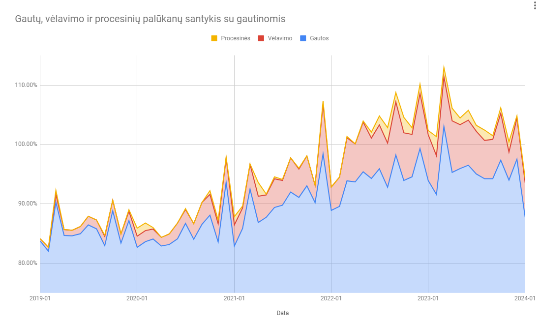 Nieko neįprasto iš esmės nematau, ypač jei žiūriu į paskutinių 5 metų istoriją - sausis ir vasaris visada būna prastesni. Kas gerai, kad vėlavimo ir procesinės jau įgauna pagreitį ir amortizuoja skirtumą tarp gautinų ir gaunamų ;)