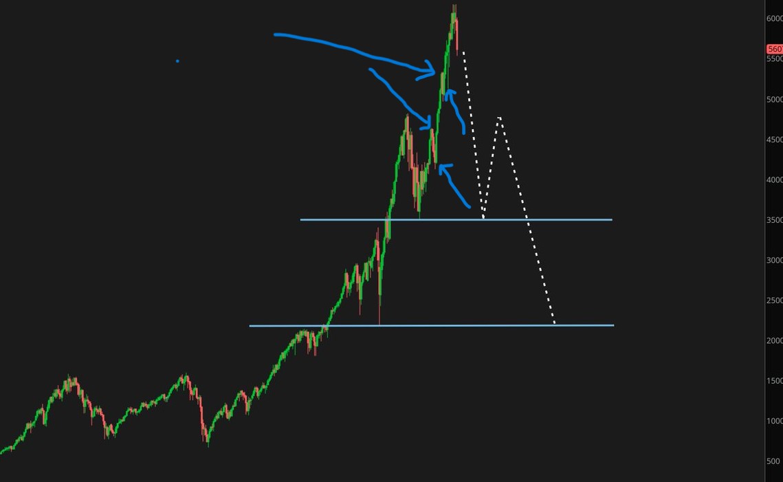 Nelabai turiu ką nupiešti. Viskas surašyta anksčiau, jav ir šioje temoje, perspektyvoje niekas nepasikeitė. Dėl trumpesnių intervalų ir lygių galiu paspėlioti. fwiw. SPX. Atskaitos lygis 5700, targetai į apačią, 5300/5200, virš 5700 tikėtis naujų all-time high, kurie ilgai neišsilaikys ir vėl sugrįš 6000-5700. Targetas 5300 šio ar kito mėnesio pradžioje smarkiai padidintų šansus 6666. Kas užbaigtų nuostabų ralį nuo 2009m. 666 -> 6666.