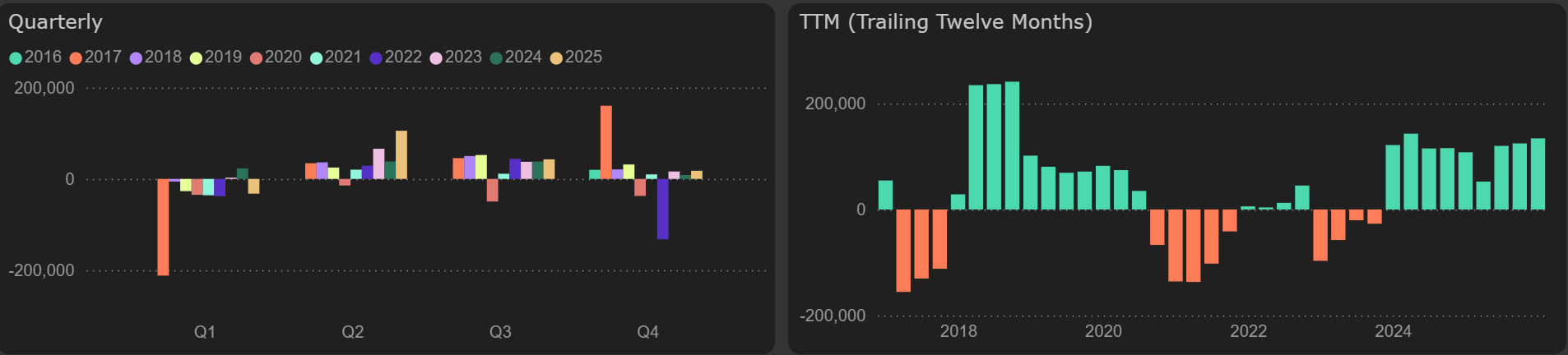 noriu_pagert [2026-02-19 23:33]: Sakyčiau neįprastai geras 4-ojo ketvirčio pelnas, bet ataskaitoje minimas laivo pardavimas ("Sale of the Cargo Vessel Sailor") atliktas spalio mėnesį. Pinigų srautų ataskaitoje yra eilutė "Proceeds from disposals of property, plant, equipment 7 821". Gal kas patikslins ar pelnas atskaičius vienkartines įplaukas būtų 12.2 - 7.8 = 4.4 ? ir netgi dar prastesnis, nes dar prailgino laivų tarnavimo laiką, dėl to amortizaciniai atskaitymai sumažėjo ~10 mln. eurų, taigi, jei obuoliai su obuoliais, minusas buvo. |