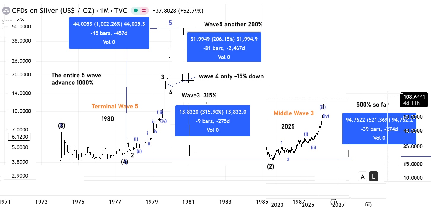 Nesitikiu kad bus pakartotas 1980 scenarijus del paprastos priezasties-tuomet buvo Terminal Wave5, O dabar dar tik Wave3 kazkur link vidurio arteja ir sioj stadijoj didesnes korekcijos yra norma. Bet palyginamasis grafikas atrodo gerai ir tuo paciu metu sako kad nieko nera neimanomo ir kartais tik sky is the limit |