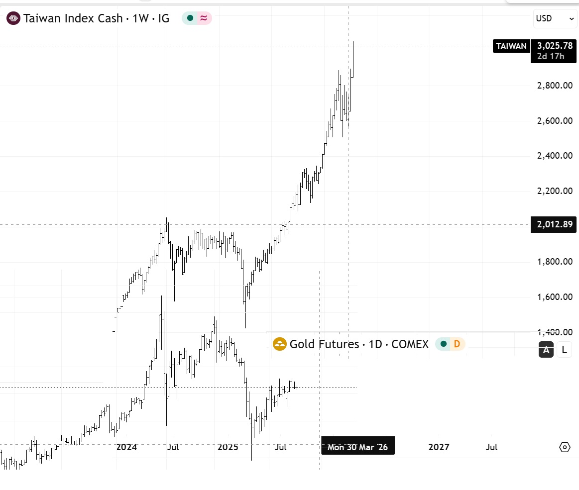 Gal Auksas bus kaip Taiwano indeksas-kai jau atrodo kad parabole pasieke pika, ji padaro dar didesni visu nuostabai.