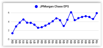 Per pirmus tris šių metų mėnesius minimo banko grynasis pelnas sudarė 16,494 mlrd. dolerių, arba 5,94 dolerius akcijai. Palyginus su 2025 metų pirmuoju ketvirčiu, pelnas pakilo tryliką procentų, o lyginant su ankstesniu ketvirčiu, jis paaugo net dvidešimt septyniais procentais.
