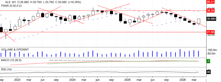 KETY akcijų kaina išlieka virš dabartinio augimo trendo linijos bei po jos patestavimo bando pradėti naują augimo etapą - rekordinių lygių šturmavimą. Artimiausiais mėnesiais paaiškės, ar tai tvarus judesys.